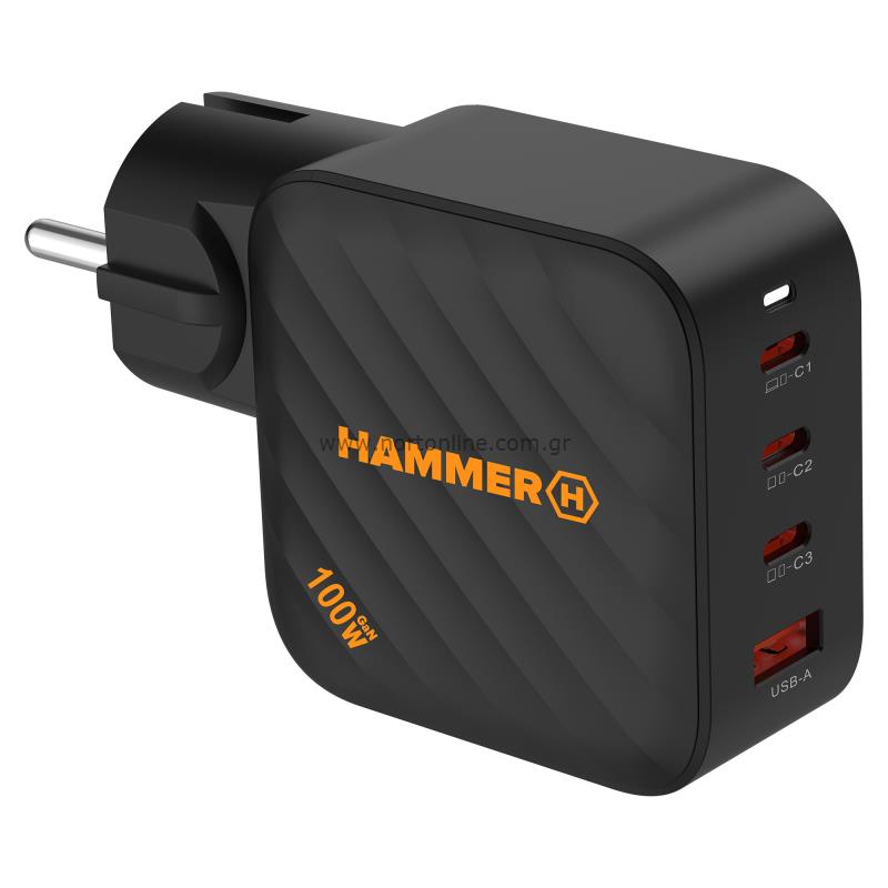 Φορτιστής Ταξιδίου Ταχείας Φόρτισης Hammer RapidCharge Duo με Τετραπλή Έξοδο USB A & 3 x USB C PD 100W Μαύρο